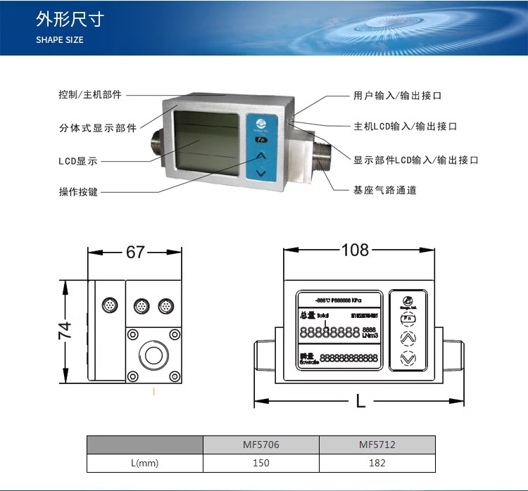 MF5612-N-200L/min 氣(qi)體流量計(ji) MF5612-N300L/min 氣體(ti)流量計