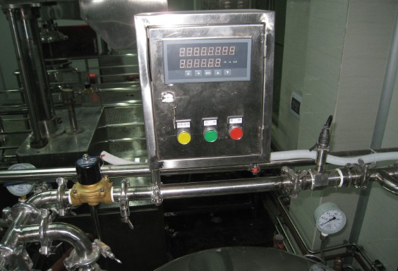 本方(fāng)案主要根據流量(liàng)計反饋給定量控(kong)制儀的脈沖流量(liàng)信号,當流量累計(jì)流量達到設定的(de)數值(定量值),定量(liang)控制儀會給電磁(ci)閥門或泵一個開(kai)關信号,已達到對(duì)閥門、泵的啓動和(he)關閉控制。實現對(dui)加料的自動和手(shǒu)動控制。該系統精(jing)度高,操作簡單,可(kě)現場校準